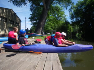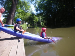 Während die Junisonne über dem Stadtfest von Sömmerda und am Bootshaus des Kanu-Clubs lachte, tat die nächste Kanutengeneration die ersten Paddelschläge und ließ sich vom Paddelvirus anstecken. Bereits am Samstag kamen neugierige Kinder mit Ihren Eltern am Bootssteg vorbei, ließen sich die verschiedenen Boote zeigen und probierten selber fleißig aus. Ist es wohl so spielerisch leicht, wie es bei der Betreuerin vom Verein aussieht oder gibt’s da einen Trick? Nach einigen anfänglichen Schlangenlinien kam ganz schnell der Spaß am Paddeln auf, und selbst die ersten Slalomtore wurden befahren. Auch am Sonntag kamen bei herrlichem Badewetter eine nicht geringe Zahl von angehenden PaddlerInnen vorbei und probierten die verschiedenen Boote aus (Kanadier, Wildwasser-, Slalomboot). Auch ein historisches Slalom-Faltboot, von seinem neuen Besitzer liebevoll restauriert, kam zu Besuch und bekam auf dem Mühlgraben endlich wieder einmal artgerechten Auslauf zwischen den Stangentoren.