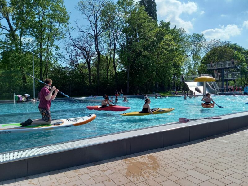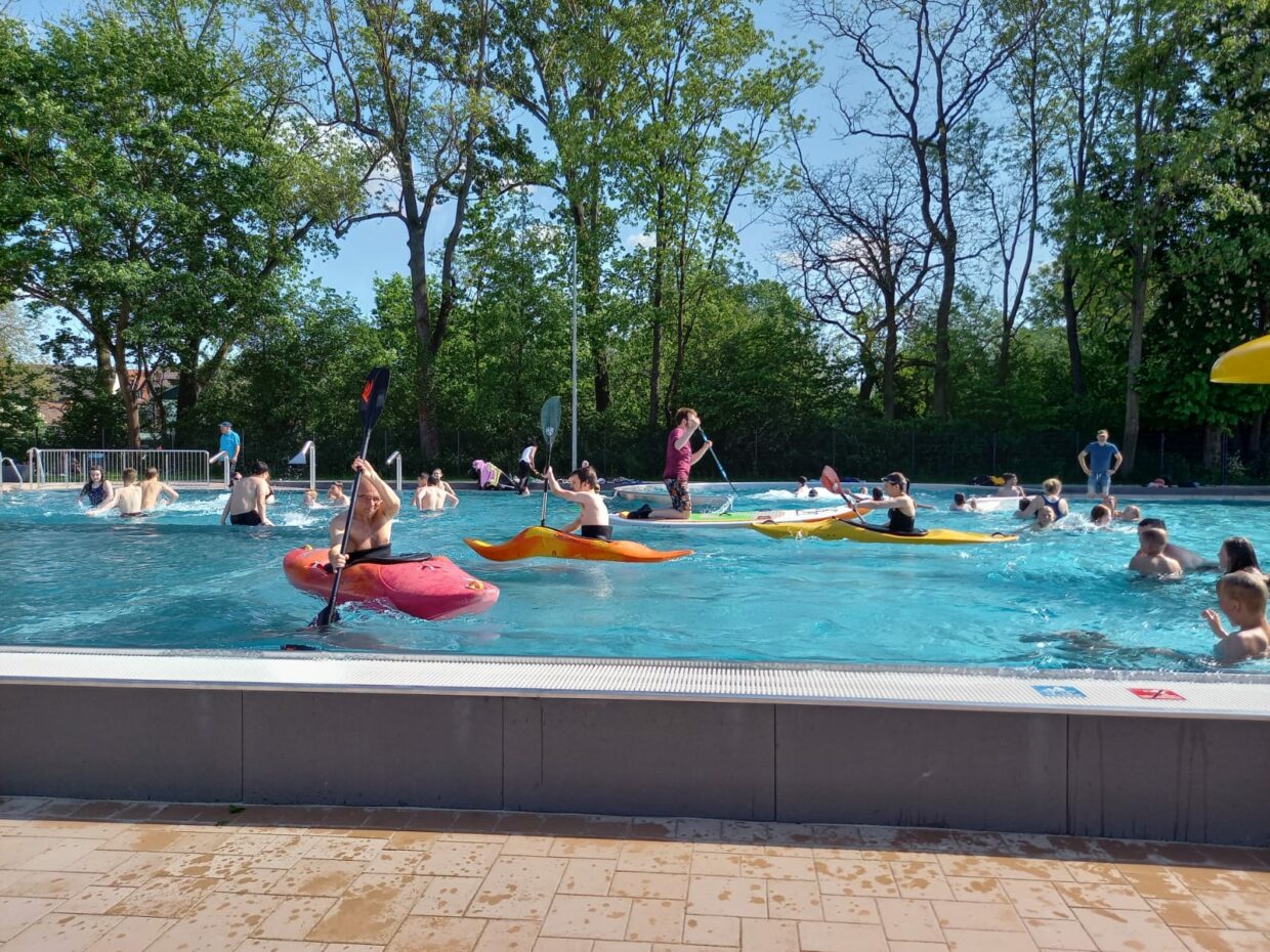 Es waren viele Vereine aus Sömmerda eingeladen und so waren auch wir natürlich gerne vor Ort um das Schwimmbecken auf ganz besondere Art einzuweihen – mit Kanu und Stand Up Paddle!